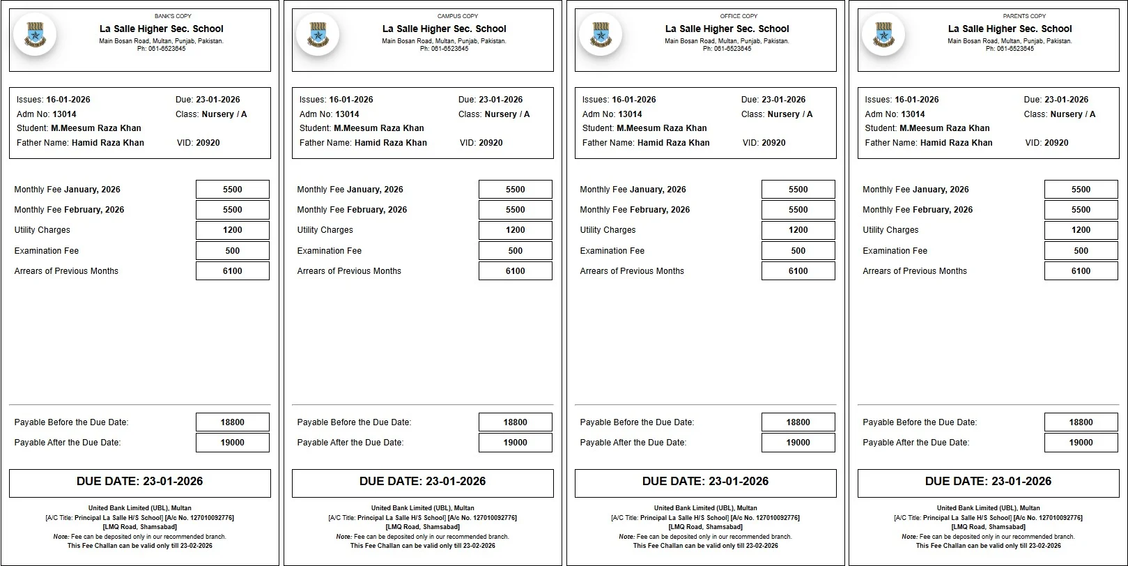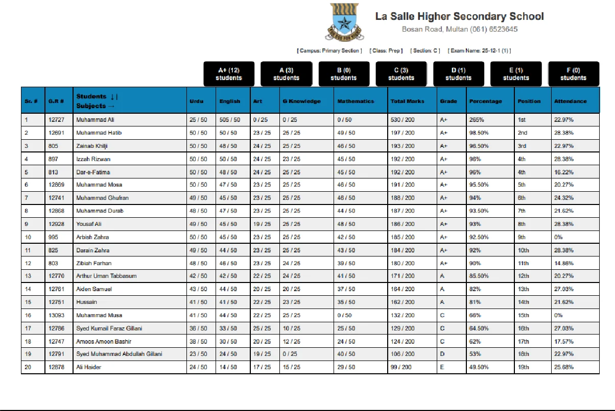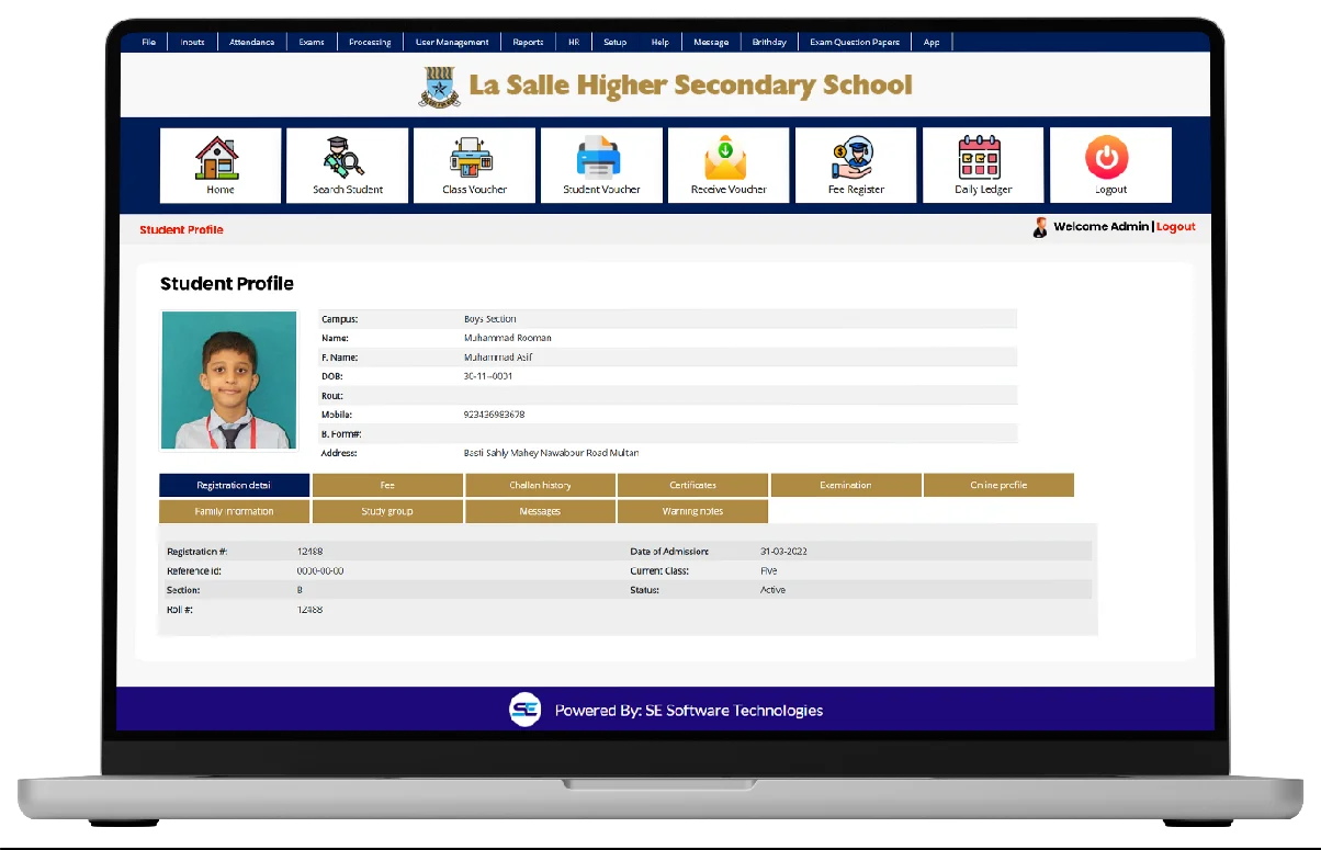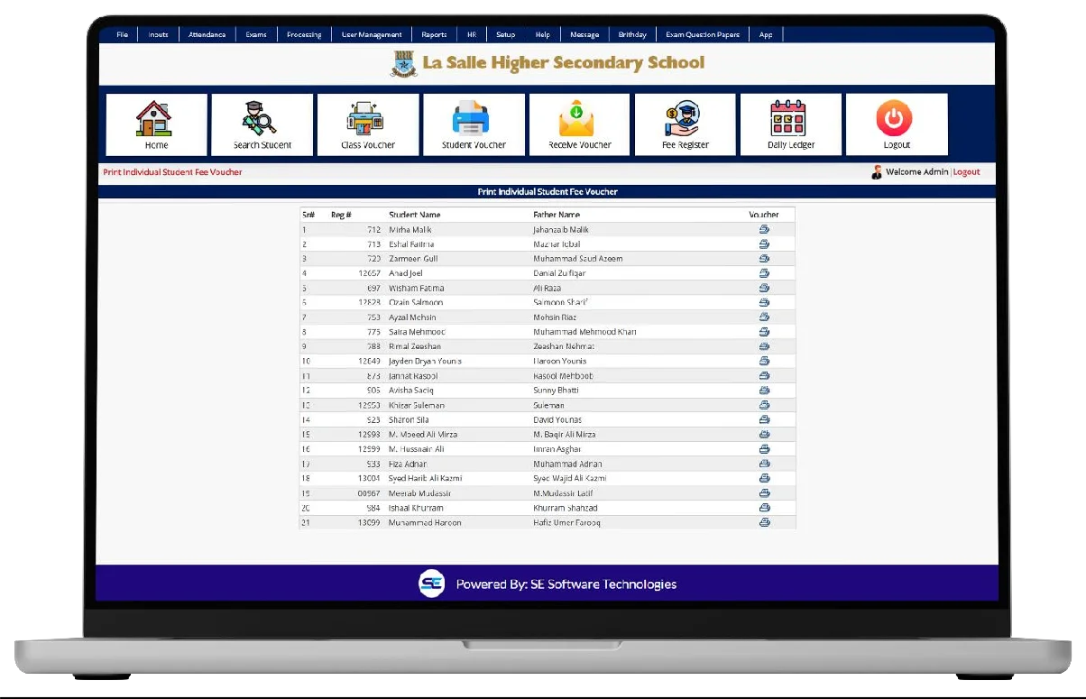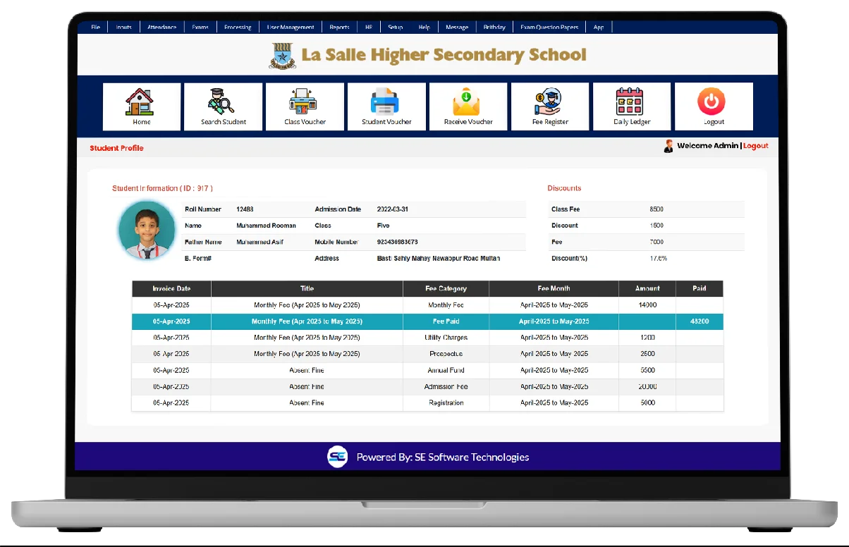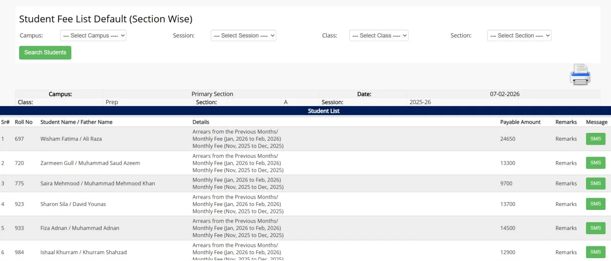 This system lets students view and print class or individual fee vouchers at any time. Comprehensive details such as paid, unpaid, advance, and waived fees are available online, so families remain informed about financial obligations.